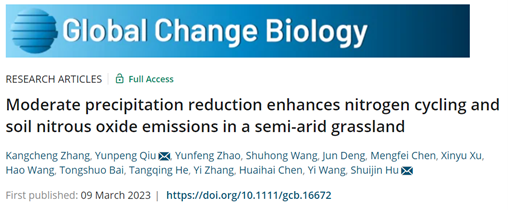 近日,资环学院生态系统生态学实验室在全球变化领域顶级期刊《Global Change Biology》上发表了题为“Moderate precipitation reduction enhances nitrogen cycling and soil nitrous oxide emissions in a semi-arid grassland”的研究论文。该实验依托黄土高原野外长期全球变化定位试验站,在半干旱草地生态系统土壤氮循环过程和N2O排放对降水减少的响应机制研究取得重要进展。