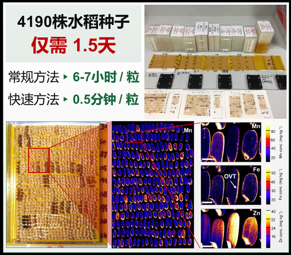 种子中必需矿质营养元素和有毒重金属元素的含量、空间分布和化学形态对人体健康有着重要的影响。为了解析作物元素吸收、转运和储存的分子机制,需要识别元素积累或空间分布的极端种质。然而,当前仍缺少一种能够高通量快速筛选种子突变体库和自然变异群体的方法。