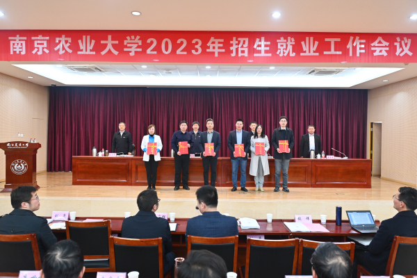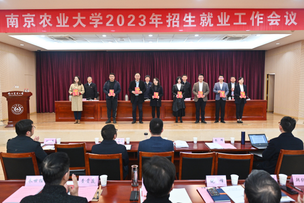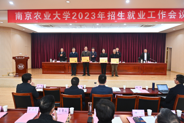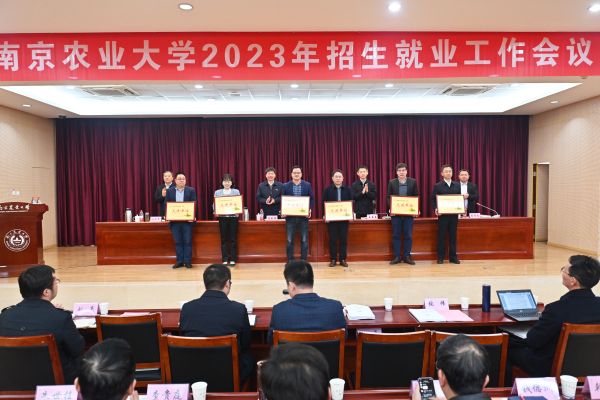 王春春宣读表彰决定。农学院、植物保护学院、资源与环境科学学院、园艺学院、经济管理学院、外国语学院6个学院荣获“2022年度招生工作先进单位”,资源与环境科学学院泰州宣传小组等14个小组获评“招生工作先进宣传小组”,万贵钧等68人荣获“招生工作先进个人”称号。动物医学院、食品科技学院、工学院、动物科技学院4个学院获评“2022年度就业工作先进单位”,动物科技学院获评“毕业生深造工作先进单位”,万小羽等30人荣获“就业工作先进个人”称号。