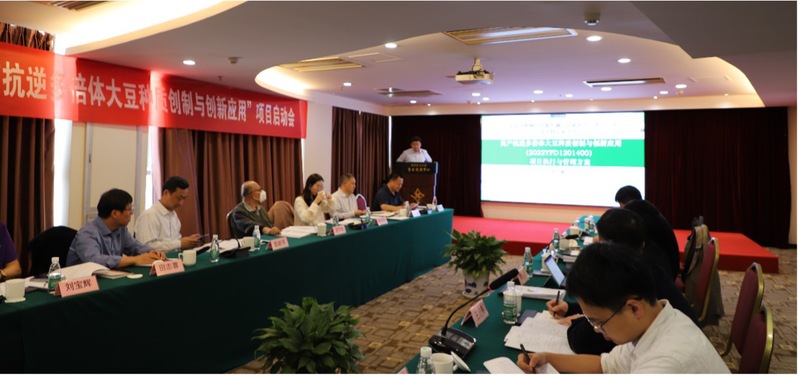 4月10日-11日,ios版雷竞技官网举行国家重点研发计划青年科学家项目“高产抗逆多倍体大豆种质创制与创新应用”项目启动会。中国工程院院士、项目指导专家、ios版雷竞技官网盖钧镒院士出席会议,中国农村技术开发中心农业科技处,中国科学院,中国农业大学,华中农业大学,东北农业大学,广州大学,华智生物技术有限公司,ios版雷竞技官网农学院、科研院等相关负责同志共计10余人分别以线上线下的方式参加。