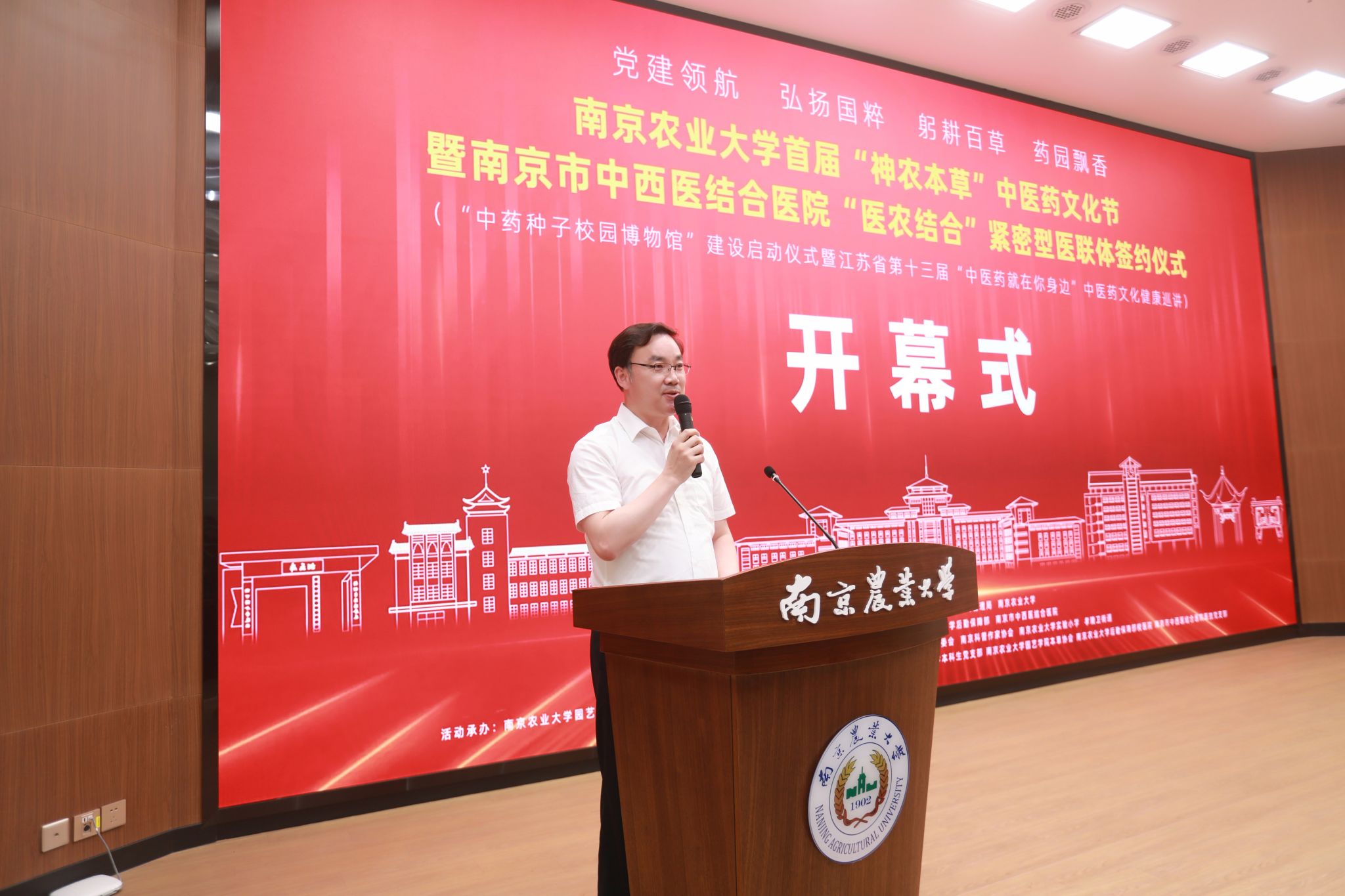 6月14日,ios版雷竞技官网首届“神农本草”中医药文化节暨ios版雷竞技官网与南京市中西医结合医院“医农结合”紧密型医联体签约仪式举行,江苏省第十三届“中医药就在你身边”中医药健康文化科普巡讲活动及“中药种子博物馆”建设同步启动。ios版雷竞技官网副校长闫祥林,南京市卫生健康委员会党委委员、副主任周楠,江苏省卫生健康委员会中医综合处副处长张小凡,玄武区卫生健康委员会二级调研员徐正海,孝陵卫街道党工委书记张浩,南京市中西医结合医院党委书记王旭、院长邵蔚、总会计师李德勤,ios版雷竞技官网实验小学、后勤保障部、园艺学院相关负责同志出席活动。