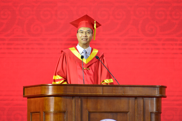 陈发棣以《以青春之名逐时代之光》寄语毕业生。陈发棣表示,四年来,同学们以青春之名,见证祖国峥嵘,参与学校发展,体悟个人成长。他期待同学们走出校园,走向社会,一要追光启程,做新时代的开拓者,在对国家和人民的实际贡献中,锤炼成栋梁之才,用青春的力量挑起民族复兴重任。二要披光远征,做新时代的奋进者,葆有对大地的赤诚,对逆境的善意、对独立的追求和对奋斗的执着,厚植爱农情怀,练就兴农本领,用坚强的意志应对人生的不确定,恪守南农人的理性与笃定,锐意创新、敢为人先、蓬勃向上,奋进新时代。三要发光有为,做新时代的领跑者,到祖国和人民最需要的地方去,到时代变革的最前沿去,担起建设科技强国、农业强国的时代使命。陈发棣祝愿同学们带着母校的祝福,汲取大地的力量,坚定人生的信念,绽放精彩,成就幸福,创造未来。