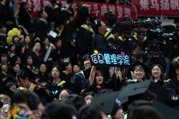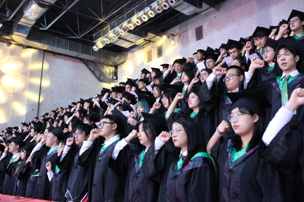 在学位授予仪式上,校领导和学部委员代表为全体毕业生扶正流苏,授予学位。4362名2023届本科毕业生从此从母校扬帆起航。