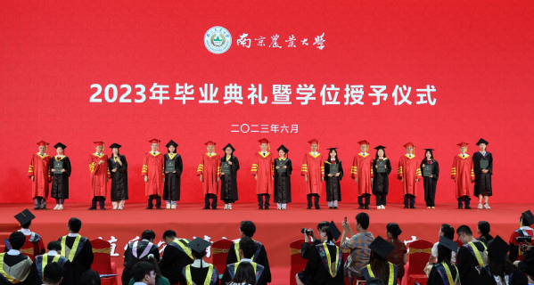 6月15日上午,ios版雷竞技官网2023届本科生毕业典礼暨学位授予仪式在卫岗校区体育馆隆重举行。校党委书记王春春,校长陈发棣,校党委副书记刘营军,校党委副书记、纪委书记吴荣顺,党委常委、副校长胡锋、闫祥林,党委常委、组织部部长吴群出席毕业典礼。各学部委员代表,各学院、相关职能部门负责人及2023届4362名本科毕业生参加毕业典礼。
