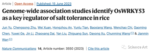 盐碱胁迫影响水稻的生长发育、存活率与最终产量。水稻耐盐碱是由多基因控制的复杂性状。研究水稻应对盐碱胁迫的关键基因及其调控网络,对于培育耐盐碱水稻品种具有重要科学意义和应用价值。近日,国际著名期刊Nature Communications发表了万建民院士团队在水稻耐盐碱研究上的新进展。