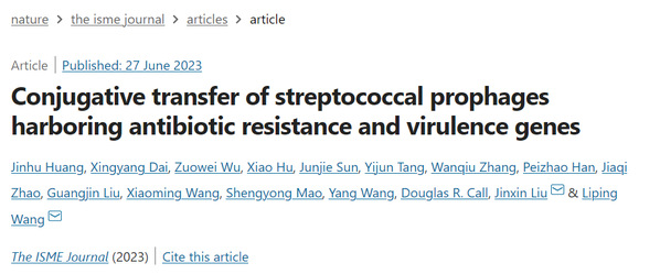 近日,ios版雷竞技官网动物医学院兽药残留与耐药性风险评估中心王丽平教授团队联合动物科技学院刘金鑫教授在The ISME Journal在线发表了题为“Conjugative transfer of streptococcal prophages harboring antibiotic resistance and virulence genes”的研究论文,揭示了前噬菌体在链球菌耐药性水平传播中的重要作用及其相关机制,为噬菌体治疗的风险评估和耐药菌感染的防控奠定了基础。