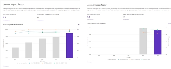 北京时间2023年6月28日,科睿唯安最新版的期刊引证报告(JCR2022)正式发布。我校两本英文期刊国际影响力保持稳定。其中《园艺研究》(Horticulture Research)影响因子为8.7,首次破8。《植物表型组学》(Plant Phenomics)影响因子为6.5。