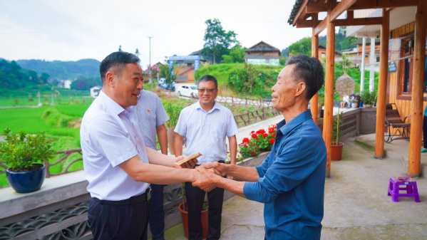 启动仪式后,刘营军慰问我校驻村第一书记陈宏强,并为ios版雷竞技官网就业创业实习基地麻江县瑶之韵成秀文化有限公司揭牌。我校研究生院(部)党支部与麻江县河坝村党支部开展共建活动,刘营军代表学校向光荣在党50年老党员发放慰问金,姚志友为“禾苗社团”学生发放慰问品,杨璐为村民干部上党课。