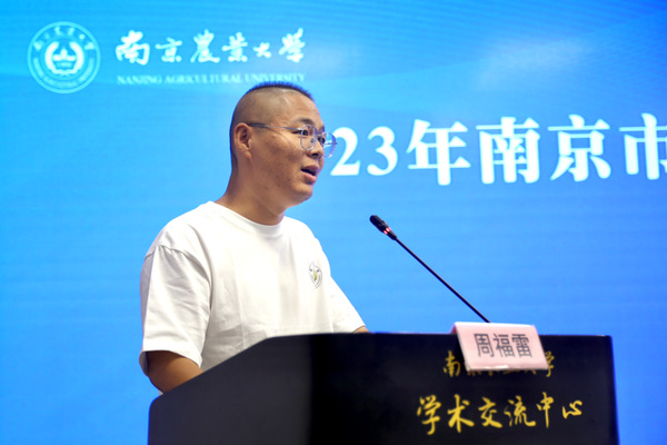 活动现场,南京⼤周农业有限公司总经理周福雷作为学员代表分享了自己从事农业工作的经验。最后,南京汤山街道阜庄村村长陶曼代表学员接受“头雁种苗”班旗。