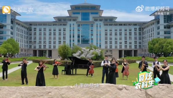 此前,我校艺术团还受邀参与了《最炫农科生》主题曲MV的录制,并于今年4月受邀参加在江苏兴化举办的“全国涉农高校强农行动-最炫农科生集结仪式”,表演的原创舞蹈《耕读筑梦》给现场观众留下了深刻印象。学校将以此次合作为契机,不断深化校媒联动,探索高校与主流媒体携手合作的新路径、新模式,不断提升学校社会影响力。