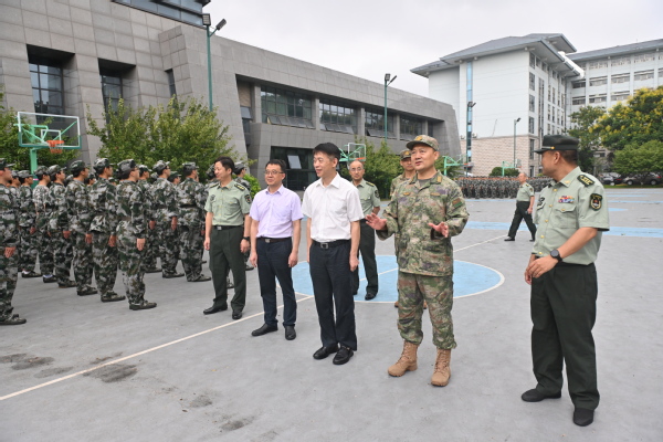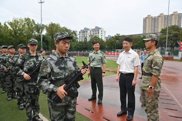 又讯 9月20日下午,解放军陆军工程大学野战工程学院院长张国玉大校、教学科研处处长连雪华上校一行来校检查指导2023级本科生军训工作,我校党委王春春书记、党委常委吴群、人武部相关负责同志陪同检查。陆军工程大学领导们听取了此次军训的概况介绍,检视了各场地正在训练的项目,慰问了参训教官和学生。
