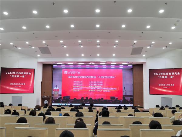 9月26日,省教育厅、省科协在南京举办2023年江苏研究生“开学第一课”活动,省教育厅副厅长袁靖宇、省科协副主席方胜昔出席活动并讲话,东南大学副校长钟文琪致辞,中国工程院院士、东南大学教授刘加平作主题报告。我校在卫岗校区图书馆报告厅、浦口校区育贤楼设置分会场,研究生院(部)相关负责人及工作人员与300余名研究生集中观看直播,9000余名研究生通过学院分会场集中观看或实验室、宿舍自行网络收看等形式观看直播。