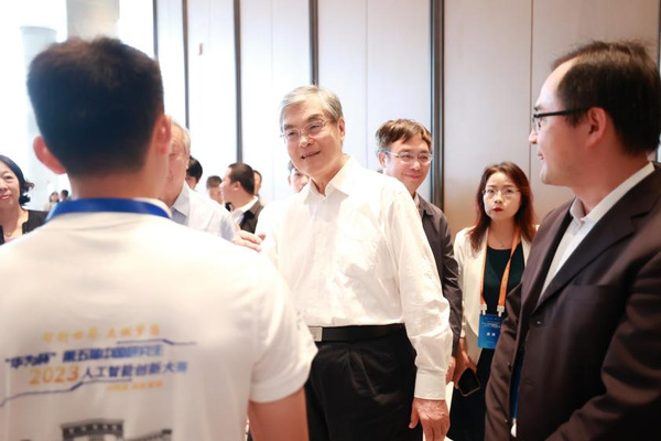 中国工程院院士、中国人工智能学会副理事长潘云鹤与我校参赛团队亲切交流