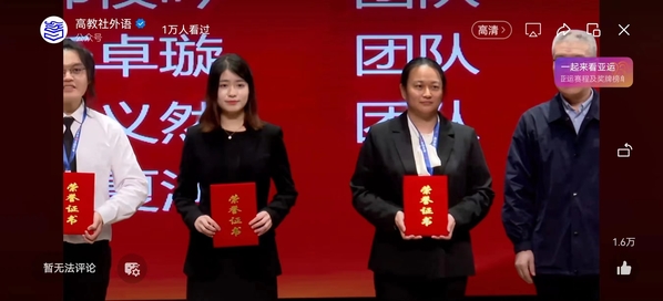 日前,由全国高等学校大学外语教学研究会指导,南京大学主办,高等教育出版社协办的第二届“高教社杯”大学生“用外语讲好中国故事”优秀短视频全国现场交流活动在南京大学苏州校区举办。由我校外国语学院本科生任卓璇、厉淑涵、伍佳怡、史新纪和经济管理学院本科生张力权、刘智婷合作完成的《织锦人生》(Weaving Life of Nanjing Brocade)斩获全国特等奖,创造了江苏省高校选手在此次活动中的最佳成绩。