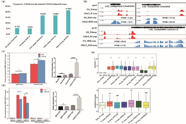 图2. CK/COLD biased的R-loop参与调控基因表达
