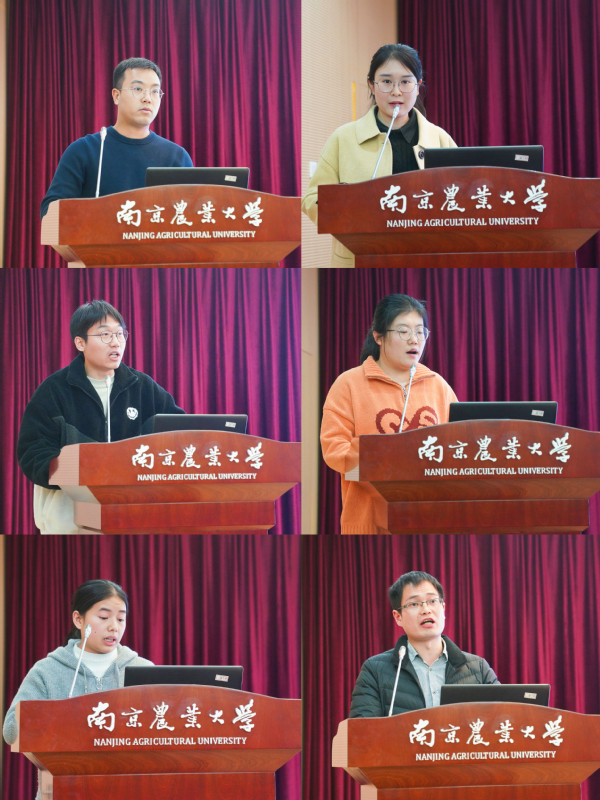 直博生报告阶段,来自农学、植保、资环、园艺、生科、工学院的6位博士生对各自课题的研究进展和阶段性成果等做了汇报,滕年军、胡高、刘金鑫对他们的报告进行了点评,提出了关键性的问题和下一步课题建议。现场同学们积极互动,交流了自己的观点和看法。