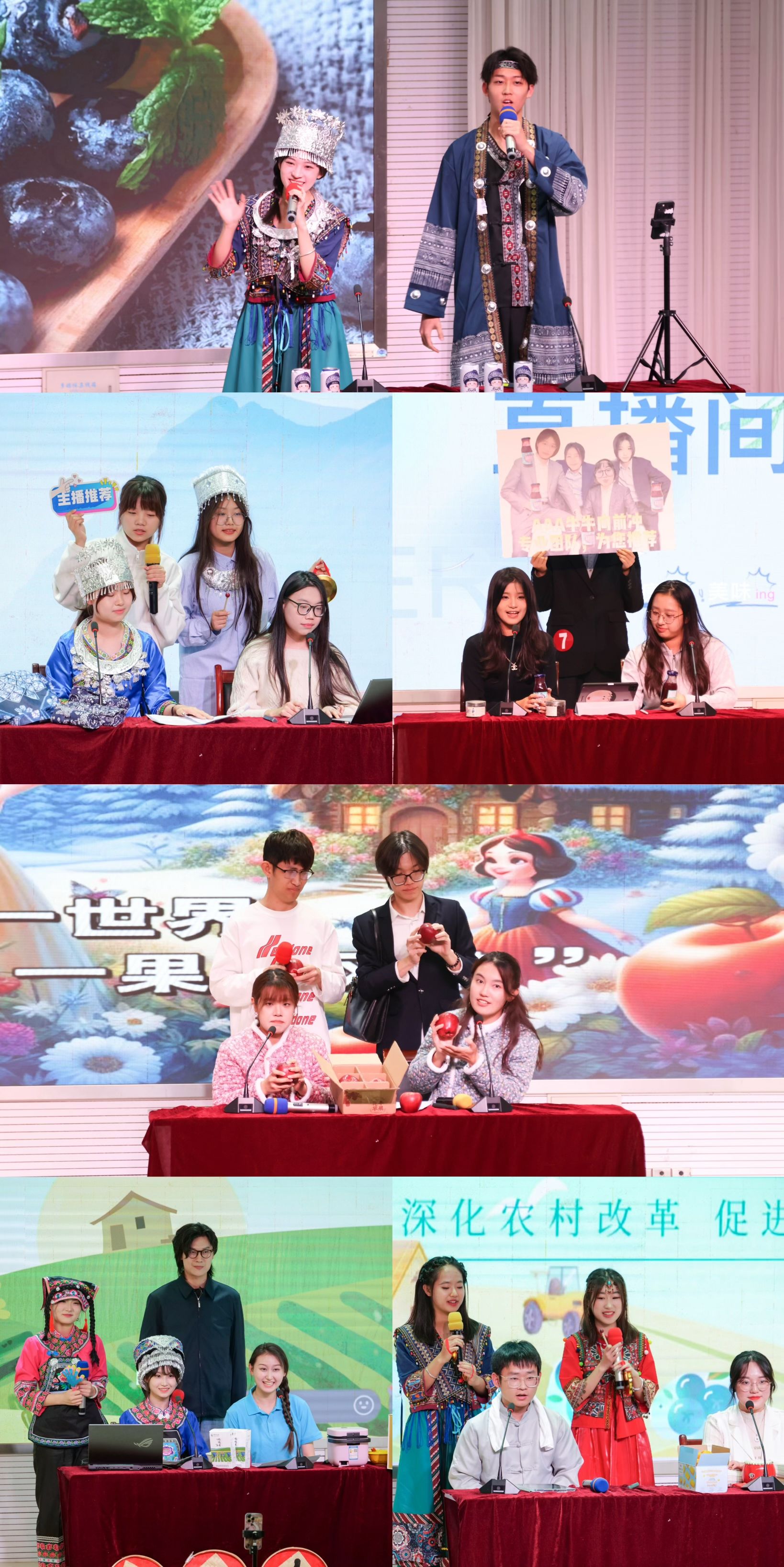在“直播赋能,农技注活”环节,各团队以网络直播形式为载体,开展沉浸式模拟即兴带货,将直播“新农技”融入乡村振兴大舞台,以创新多元的呈现形式、别具一格的语言效果,赋能农产品的经济价值,为大家带来一场精彩的视听盛宴。