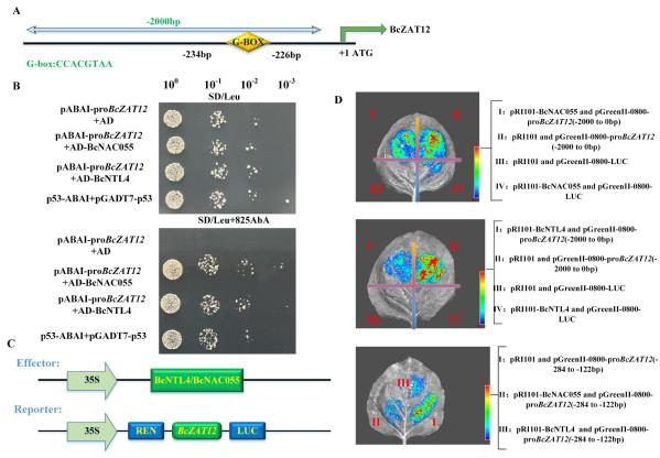 图5 BcNTL4/BcNAC055与BcZAT12上的G-BOX元件结合