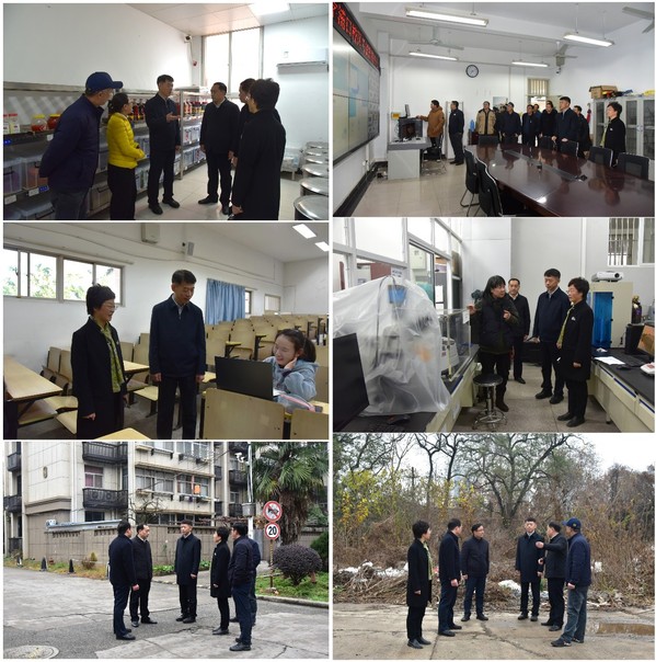 当日下午,王春春一行来到浦口校区家属区、顶山地块、润泽园、汇贤楼、博远楼等地实地考察,现场察看校区教学、科研及基本设施保障等情况。调研中,王春春详细了解了浦口校区餐饮服务、食品安全、课堂教学、科研进展等情况。