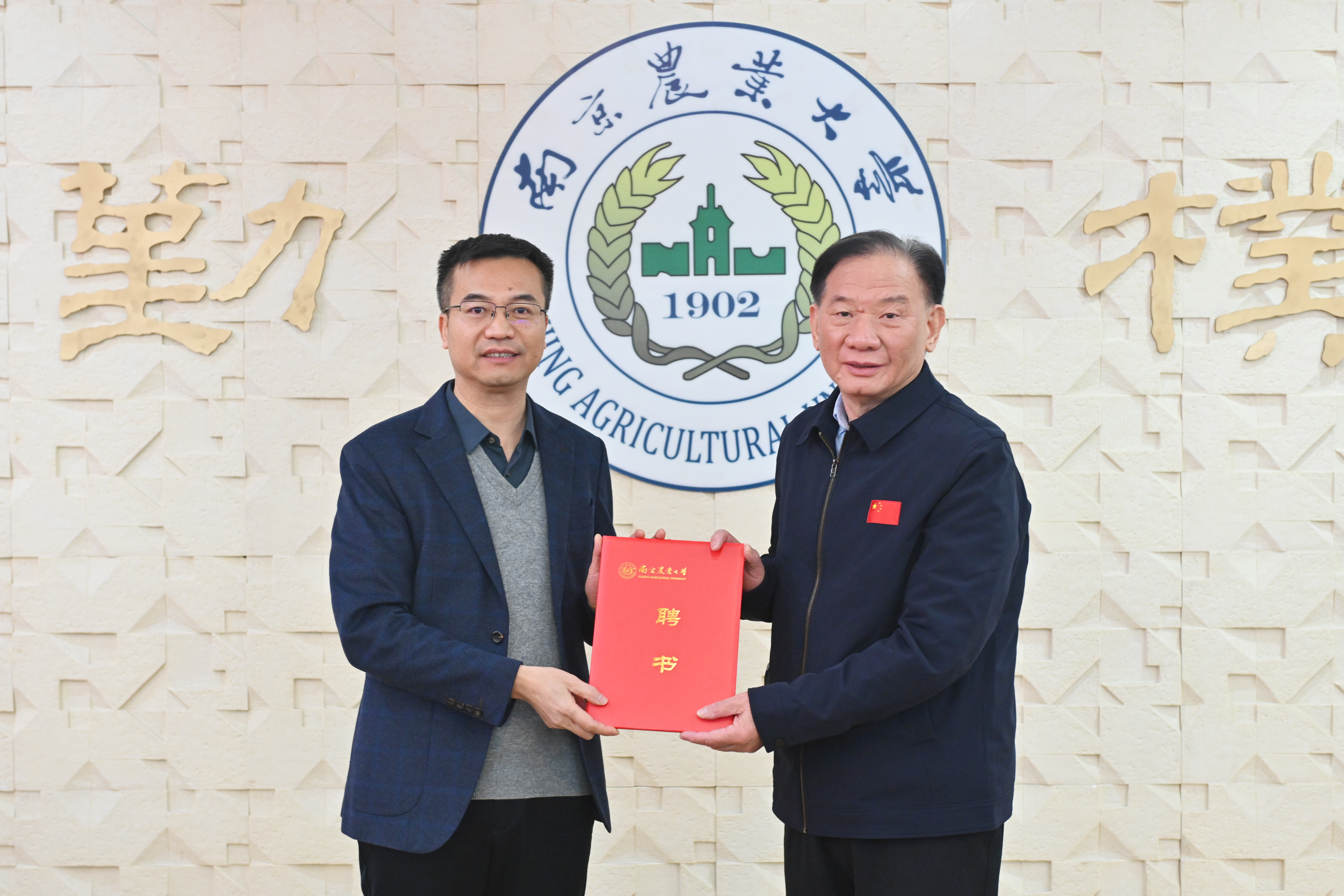 陈发棣宣读了第九届学术委员会委员名单,并为与会委员颁发聘书。他代表学校向新一届学术委员会的成立、对新当选的各位委员表示祝贺,向历届学术委员会对学校发展做出的贡献表示感谢。他希望学术委员会在学校改革发展、学科专业建设、科研能力提升、师资队伍建设、学术环境优化等五个方面展现更大作为,在学术评价改革、学术生态塑造、学术治理体系完善等方面取得更大成效,将思想和行动统一到学校战略部署上来,认真履行教授治学职责,打造更加紧密的学术共同体,为学校加快迈向农业特色世界一流大学提供更加有力的支撑。