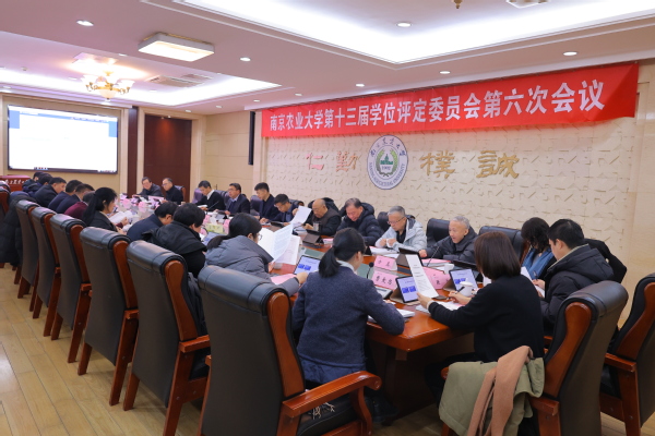 12月27日上午,学校第十三届学位评定委员会第六次会议在金陵研究院召开,校党委书记王春春,校长陈发棣,中国工程院院士盖钧镒、沈其荣,副校长董维春、王源超、朱艳等25位委员出席会议,会议由董维春主持。