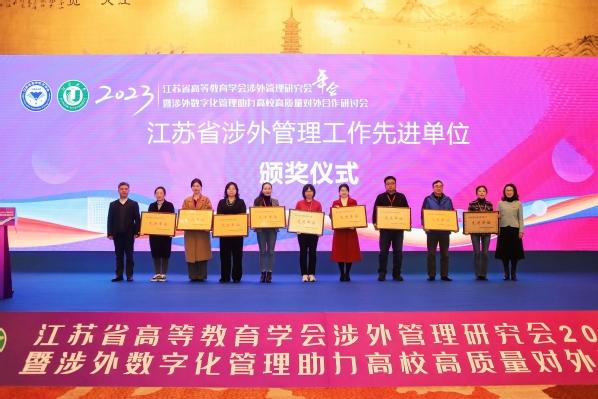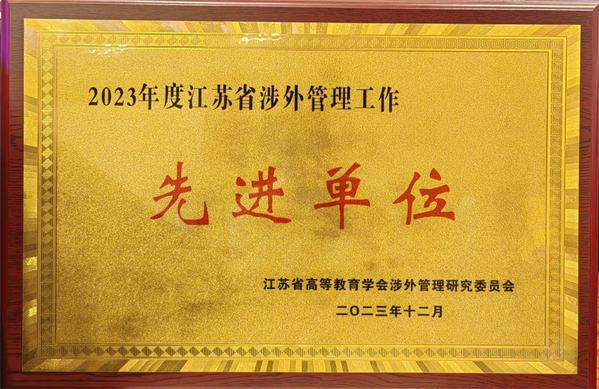 会上分别表彰了2023年涉外管理和来华留学生教育工作的先进单位和个人。我校再次荣获2023年度“江苏省涉外管理工作先进单位”和“江苏省来华留学生教育先进集体”,这是我校连续第五年获得这两项荣誉。我校另有五名个人分别荣获2023年度“江苏省涉外管理工作先进个人” “江苏省外国留学生教育管理先进个人”等荣誉称号。