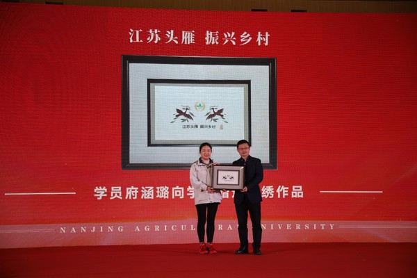 首批学员代表府涵璐向学校赠送了苏绣作品。她表示,回到工作岗位后一定珍惜学习成果,把培训中学到的新理念、新知识、新技能运用到生产实践中,发挥好“领头雁”传帮带作用。同时借助培训机会,与学校、农科生、机构导师等建立长效联系,指导“头雁”做大做强产业,更好联农带农益农。