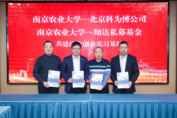 为加强学校和校友企业联系,为南农学子提供多元就业实习岗位,现场还举行了就业创业实习基地签约仪式。北京科为博公司、翔达私募基金与南农大签署了共建协议。