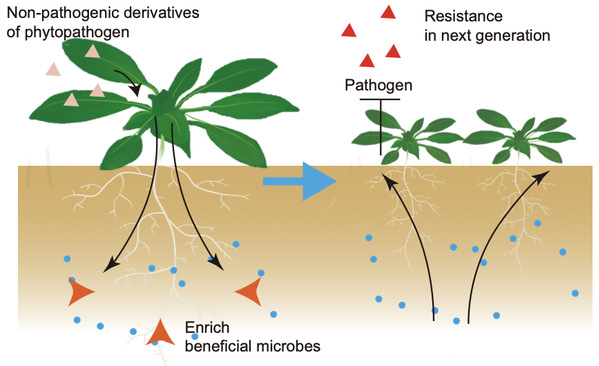 植物受到病原菌侵染后会招募根际的益生微生物,形成具有防控病害、促进植物生长等功能的天然抑病土壤,这种现象被称为“呼救(cry for help)”反应,在多种作物和模式植物上得到广泛验证和认可。然而经典的“呼救”反应需要接种能够引起植物发病的微生物才能诱导,这导致该理论在农业生产上不具有应用可行性,而且呼救招募的机制也不清楚。