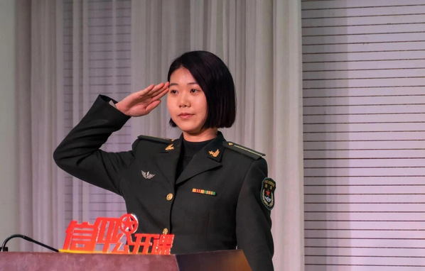 杨雅祺从自己对英雄的定义为开端,引出了其父辈对航天事业的贡献和为祖国奉献的事迹。扎根大漠三十载,助力火箭腾飞、导弹升空,即使生命遭受威胁,仍然想着据点测量的任务,她的分享生动展现了中国军人在保卫导弹、航空航天事业上的敬业精神和奉献精神。