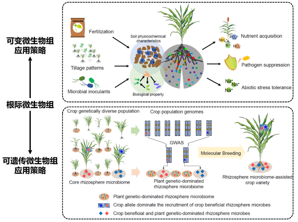 根际微生物能在进化过程中与植物形成功能丰富的共生体(holobiont),对宿主植物的营养和健康发挥着重要的作用,被称为植物的第二基因组。微生物、宿主植物和根际环境之间错综复杂的相互作用对精准调控植物与根际微生物组的关系提出了极大的挑战。当前根际微生物的利用方式主要是分离优异菌种开发微生物肥料或微生物农药等生物制品,然而如何从整体层面上充分利用整个根际微生物组?如何从外源施用益生菌转变到原位发挥根际微生物组的内在功能?如何促进根际微生物对作物的“被动服务”向根际的“主动服务”转变?目前没有提出明确的思路和策略。