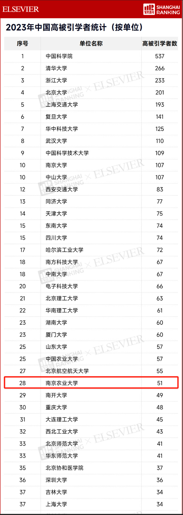 3月27日,爱思唯尔(Elsevier) 2023“中国高被引学者” (Highly Cited Chinese Researchers)榜单发布。我校此次有51位学者入选榜单,位居全国第28名。