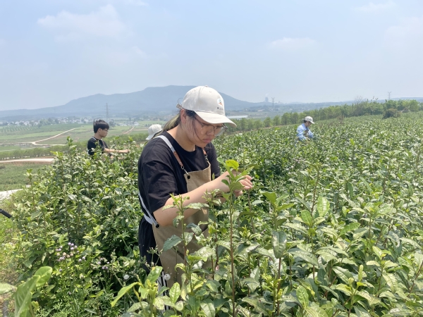 “胜男,景嵩,你俩要注意喷洒的频率,让茶树们均匀吸收……”4月底,溧水芝山村的茶园里,春茶采集已经结束,年轻人在老师的指导下开始了新一季的研究。他们正在给修剪过后的茶树喷洒他们研制的炭基营养液,希望下一季有更好的结果。