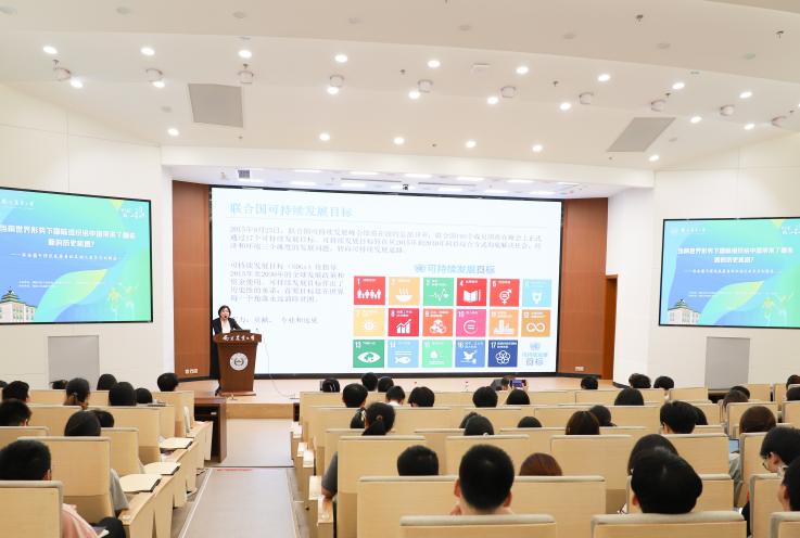 王滢博士就联合国历史沿革与可持续发展目标做了具体讲解。她指出,在探讨全球性议题时,联合国及其制定的可持续发展目标始终扮演着关键角色。这些目标不仅体现了国际社会的共同愿景,而且它们的实现对地球未来有着深远影响。王滢强调,在这个全球化时代,每个国家都有责任共同努力,确保可持续发展目标得以实现。只有通过合作与协调,我们才能确保在发展过程中不遗漏任何一个人,让每个人都能享受到和平、繁荣的未来。