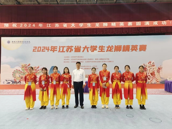 5月31日至6月2日,由江苏省学生体育协会、江苏省学生体育协会高校工作委员会联合举办的2024年江苏省大学生龙狮精英赛在徐州工业职业技术学院举行。我校舞龙舞狮队在参加的六项比赛中获得一项第一、两项第二、两项第四,孙建老师被评为体育道德风尚奖教练员,陈培基、刘斯佳、张晶被评为体育道德风尚奖运动员。