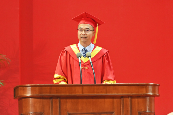 陈发棣以《做一粒种子开理想之花》寄语毕业生。梦起春程、山河夏盛、学丰秋实、冬藏新盼,陈发棣和同学们一起回顾了在母校寒来暑往的四年时光。他寄语同学们做向上生长的种子,开出信仰之花,无论身在何方、身从何事、身居何位,都胸怀国家事,肩扛国家责。他希望同学们做向下扎根的种子,开出理想之花,一步一个脚印,做理想的事业,在事业中成就理想。他鼓励同学们做向外求索的种子,开出奋斗之花,到时代变革的最前沿和科技创新的最前端,锤炼过硬本领,建功新时代,筑梦强国路。他勉励同学们做向内丰盈的种子,开出梦想之花,相信热爱的力量,相信梦想的力量,坚定志向,行稳致远,坚守心中的纯粹和热爱。