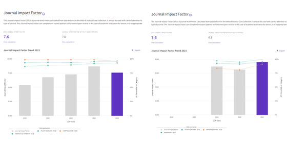 6月20日,科睿唯安最新版的期刊引证报告(JCR2023)正式发布。我校两本英文期刊国际影响力保持稳定。《园艺研究》(Horticulture Research)和《植物表型组学》(Plant Phenomics)影响因子均为7.6。