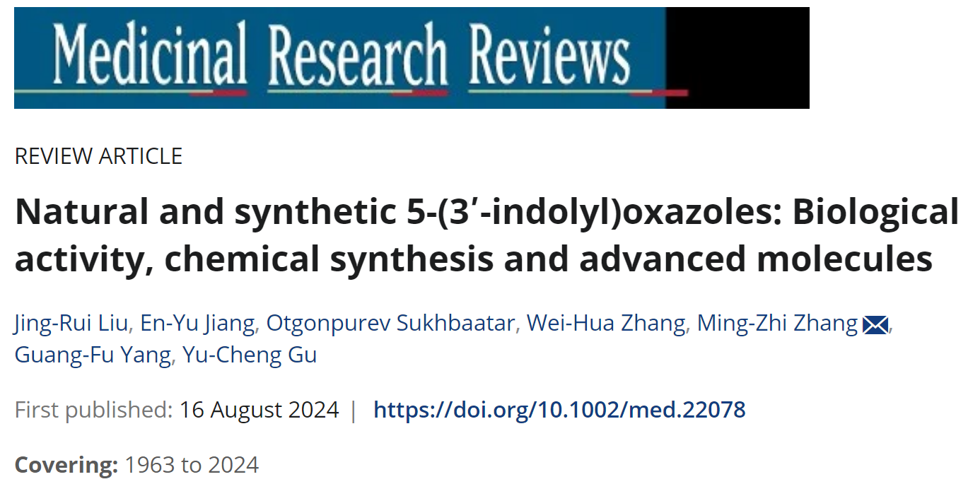 近日,ios版雷竞技官网理学院章维华教授和张明智副教授团队在药物化学领域国际权威期刊《Medicinal Research Reviews》在线发表了题为“Natural and synthetic 5-(3’-indolyl)oxazoles: Biological activity, chemical synthesis and advanced molecules”的综述论文,系统总结了1963年至今含有5-(3’-吲哚基)噁唑结构的天然产物及合成化合物的生物活性、化学合成、作用机理及活性分子,包括团队前期的系列研究工作。值得一提的是,这是ios版雷竞技官网首次以第一作者和通讯作者单位在《Medicinal Research Reviews》发表论文。