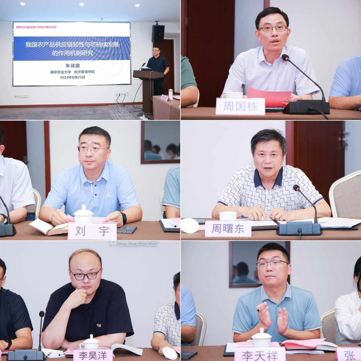 项目首席专家朱战国教授从立项依据、研究内容、研究方案、特色创新、团队基础、预期成果等方面进行了详细汇报。他介绍本项目立足统筹陆地与海洋资源以及“两个市场,两种资源”,在生态环境安全边界内“布局全国”“开拓海外”“创新技术”,科学拓展和划定农产品供应链布局新空间,加快形成强韧性、可持续农产品供应链,为实现农产品供给体系向强韧性可持续发展转型、保障粮食和重要农产品稳定安全供给提供理论基础与决策支撑。项目子课题负责人北京大学博雅特聘教授、国家杰出青年基金获得者刘宇,我校经济管理学院周曙东教授、李昊洋教授、李天祥副教授等参会,并就相关内容补充介绍。