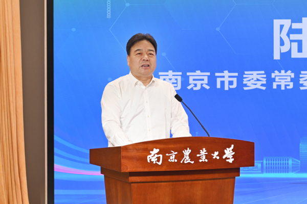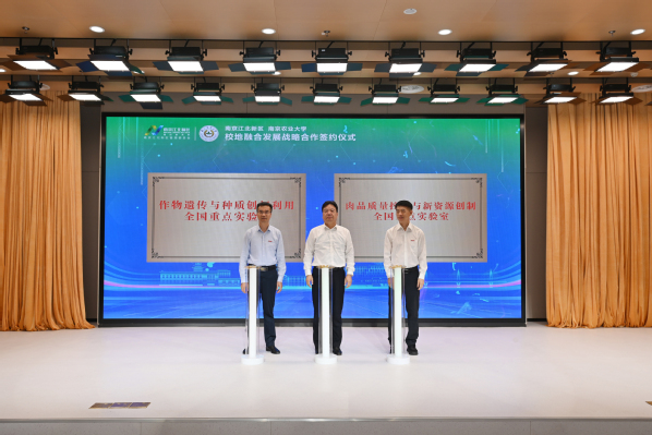 陈发棣在主持时指出,南农与江北新区开展战略合作,既是对习近平总书记提出“产教融合、科教融汇”等重要指示精神的贯彻落实,是服务江苏打造发展新质生产力重要阵地的有效实践,也是我校面向国家战略,服务区域经济社会发展,建设农业特色世界一流大学的积极行动。校地双方长期以来保持着紧密的合作关系,携手推动政产学研用深度融合,创造了显著的经济社会效益,树立了双向奔赴、相互赋能、协同发展的良好典范。希望双方全面贯彻科教兴国战略、人才强国战略、创新驱动发展战略,打造产教融合、校地共建的模范样板,将学校教育实力、科技实力、人才实力切实转化为服务新区建设发展的强大创新力、新质生产力和核心竞争力,不断汇聚起支撑新区高质量发展的强大合力。