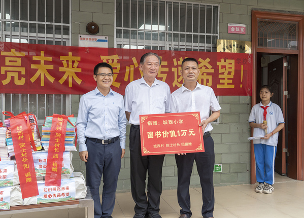 在城西小学,沈其荣院士一行对全校师生进行慰问,捐赠了书籍,并接受了学生送上的鲜花和致敬。在六年级的教室里,沈其荣院士给同学们带来了主题为“厚德才能载物 根深才能叶茂”的科普讲座,通过植物生长的科学奥秘启发同学们要树立正确的人生观,成长为建设国家的主力军。
