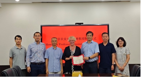 9月11日,法国农业科学院院士、法国国家农业食品与环境研究院高级科学家Emmanuelle Jacquin‐Joly名誉教授受聘仪式在我校卫岗校区举行。副校长王源超,植物保护学院,国际合作与交流处(港澳台办公室)、国际教育学院(密西根学院)相关同志参加了聘任仪式,并就中法植物保护领域的合作开展研讨交流。