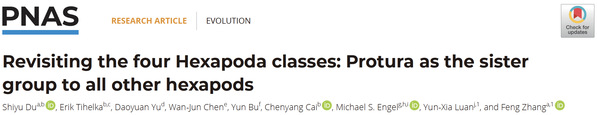 近日,国际顶级刊物Proceedings of the National Academy of Sciences (PNAS) 在线刊登了ios版雷竞技官网植物保护学院昆虫系张峰教授团队和华南师范大学生命科学学院栾云霞研究员团队的研究论文,题目为“Revisiting the four Hexapoda classes: Protura as the sister group to all other hexapods”。该研究通过系统发育基因组学综合分析,聚焦了六足总纲(Hexapoda)4个纲(原尾纲Protura、弹尾纲Collembola、双尾纲Diplura和昆虫纲Insecta)之间的进化关系,为昆虫的起源和进化提供了新见解。