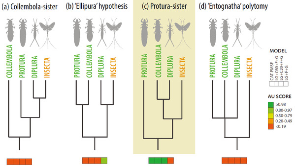 六足总纲(广义的昆虫)是动物界中生物多样性最高的类群。六足总纲目前分为4个纲,其中弹尾纲、原尾纲、双尾纲由于在形态特征上具有一些比较原始的特征,因此又被俗称是低等六足动物(或noninsect hexapods)。三类低等六足动物迄今为止已知大约10,800种,占动物多样性的1%左右。先前基于形态学和分子数据的系统发育分析未能就这三类低等六足动物和昆虫纲的进化关系达成一致,并且已经争论了一个多世纪。不同的进化关系也暗示了昆虫体型(body plan)和登陆(terrestrialization)的不同演化场景。