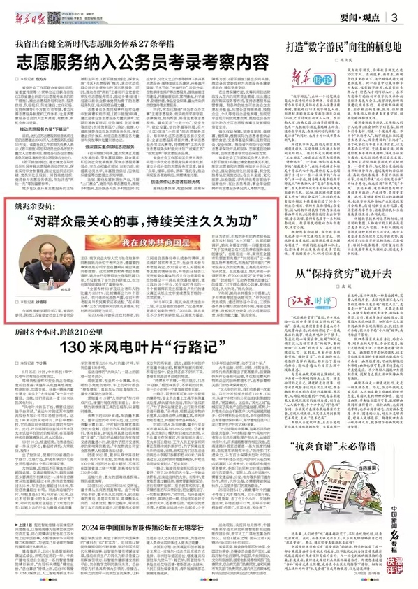 【新华日报】姚兆余:“对群众最关心的事,持续关注久久为功”