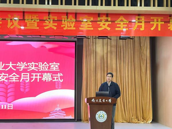 11月11日下午,学校召开2024年实验室安全工作会议暨实验室安全月开幕式。副校长王源超出席会议。实验室安全工作领导小组成员单位主要负责同志,各学院分管实验室安全工作负责同志,全校教学、科研实验机构负责人,学校实验室安全督导、学生协查员,学院实验室安全管理员,学生代表等150余人参加会议。会议还邀请了南京工业大学实验室建设与管理处处长陈晓猛作为嘉宾出席会议并作实验室安全专题报告。