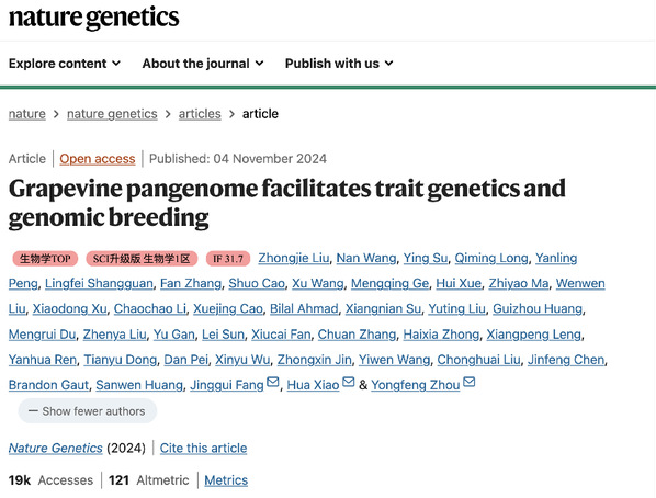 中国农业科学院深圳农业基因组研究所(岭南现代农业科学与技术广东省实验室深圳分中心)周永锋研究员、肖华副研究员和我校房经贵教授为该文章的通讯作者,基因组所(大鹏湾实验室)刘众杰、王楠、苏颖、龙颀明、彭艳玲和我校园艺学院上官凌飞老师为该文章的共同第一作者。中国农业科学院郑州果树研究所刘崇怀研究员、樊秀彩研究员等参与了该项研究。