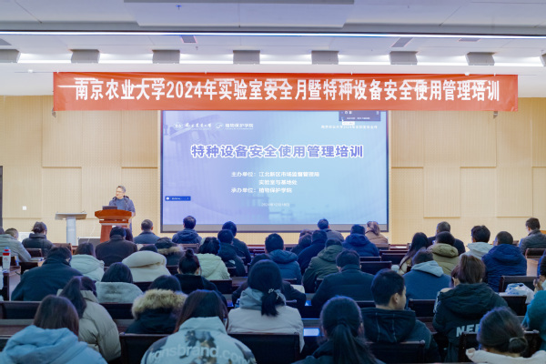 12月18日,由江北新区市场监督管理局和ios版雷竞技官网实验室与基地处联合主办,植物保护学院承办的特种设备安全使用管理培训在滨江校区举行,江北新区市场监督管理局副局长徐立兵、特设办主任陈洋,ios版雷竞技官网实验室与基地处和植物保护学院相关负责同志,以及学校实验室安全督导、学院实验室安全管理员、特种设备管理员和师生代表共158人参加了培训会。
