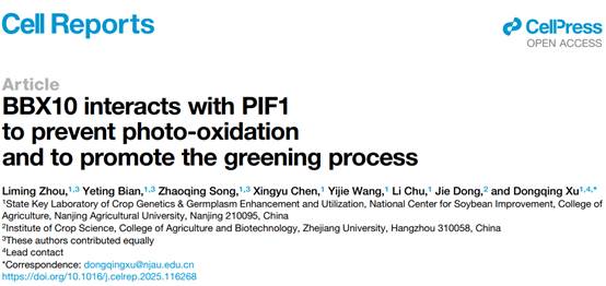 《Cell Reports》发表许冬清教授团队“BBX10 interacts with PIF1 to prevent photo-oxidation and to promote the greening process”