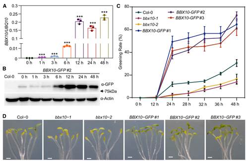 图1. BBX10 促进子叶去黄化过程